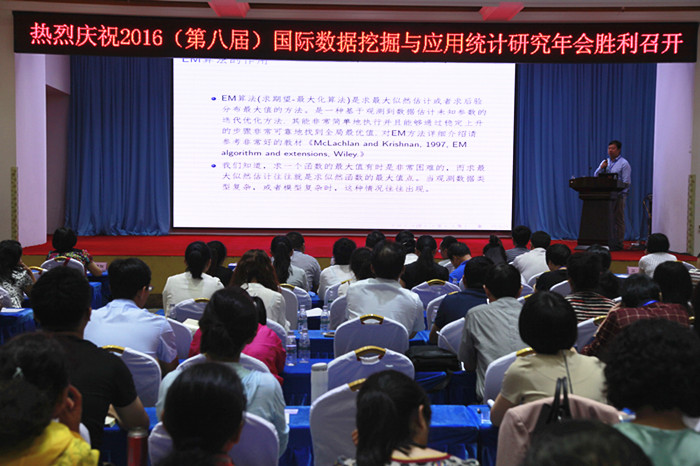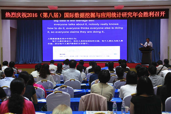 7月23日至7月26日,由国际数据挖掘与应用统计研究会组委会主办、beat365官网承办的2016(第八届)国际数据挖掘与应用统计研究年会在大庆召开。来自美国加州州立大学圣地亚哥分校、台北医学大学、台湾淡江大学、北京大学、厦门大学、中央财经大学、哈尔滨工业大学、同济大学、浙江工商大学等70余所高校,北京商智通信息技术有限公司、光环国际、大庆油田信息技术公司、江苏先锋信息科技公司等十个公司,《中国统计》杂志社、高等教育出版社、科学出版社、电子工业等五家杂志社及出版社的代表200余人参会。会议由beat365官网beat365英国官方网站院长王玉学教授主持。