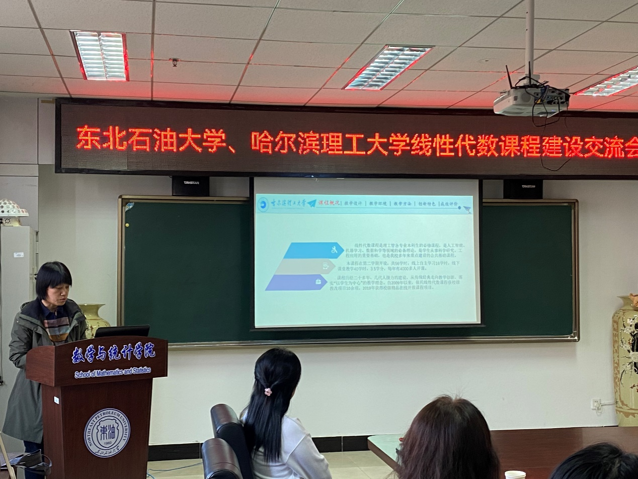 会上,哈理工吕月明博士作了题为“《线性代数》 课程改革与建设”的报告,介绍了哈理工在课程概况、教学设计、教学环境、教学方法、创新特色及成效评价中的方法和经验。