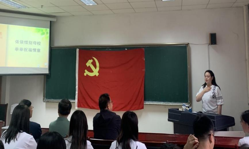 活动第四项,党支部书记李雨作为党员代表对毕业生送祝福。李雨同志首先感谢了各位书记、领导的莅临。接下来感谢各位党员对自己工作的支持与配合,同时表达了自己对毕业生党员的不舍,并对各位毕业生送上了自己的美好祝愿,祝愿毕业生党员能够点亮理想之灯,照亮美好前程。