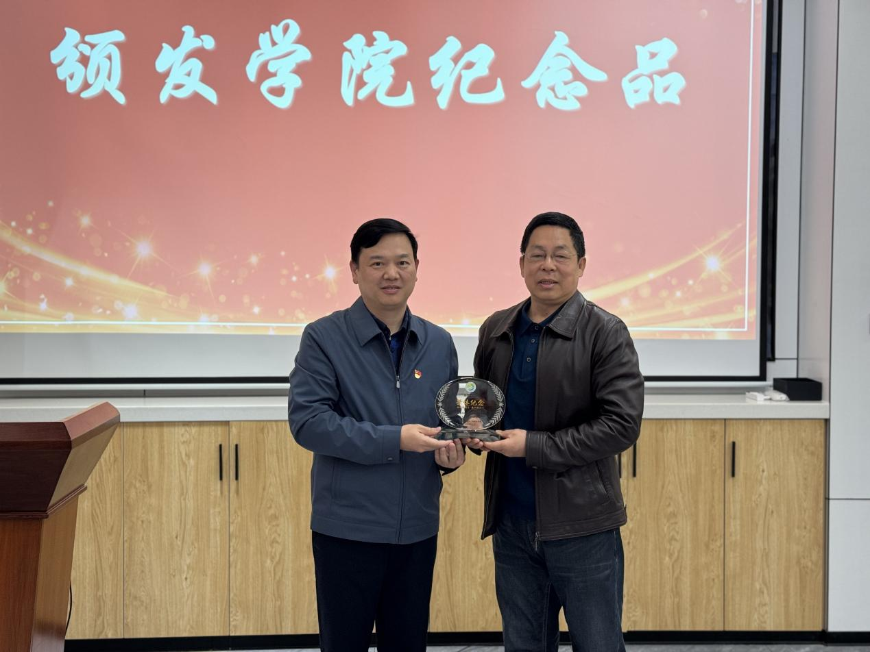 学院党总支书记汪泽平代表学院为赵新教授送上纪念品,祝福赵新教授荣休快乐,今后的生活多姿多彩,心情愉快,身体健康、阖家幸福,在人生的又一个旅途开启新的精彩篇章!