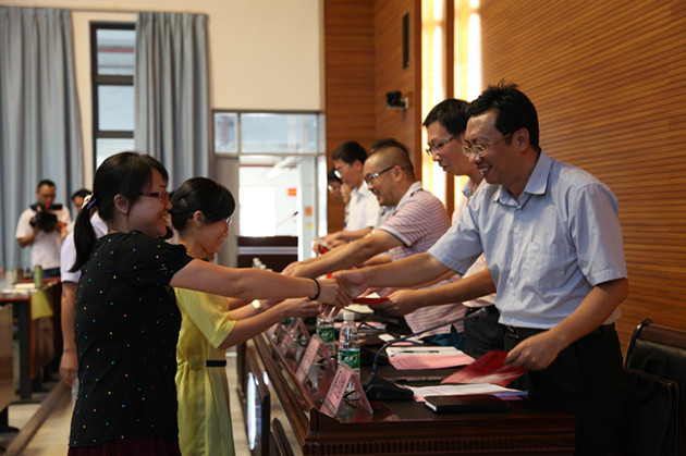 接着,奚创旭副院长宣读了获得2013—2014学年先进集体和个人名单。省环保厅及学院领导共同为先进集体代表和先进个人颁发了奖状。