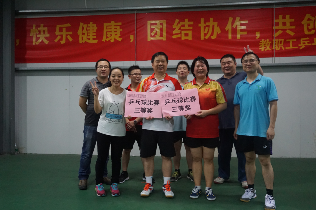 10月17日-19日,由院工会主办、教职工乒乓球协会承办的2016年教职工乒乓球比赛于学院体育馆举行。本次比赛为混合团体赛,由学院的五个分工会组成的五支队伍以循环赛的形式进行。