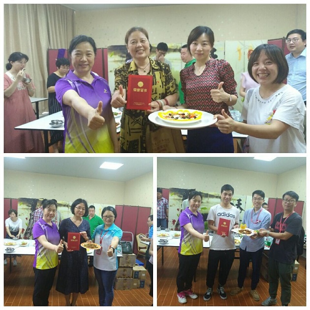 4月25日,我院工会第九届教职工烹饪大赛在饭堂三楼举行。九支参赛队伍上演了一场展示烹饪“绝活”的大比拼。党委副书记、工会主席李杨红现场观摩了比赛,并为获奖队伍颁奖。