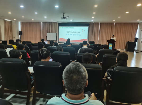 张平泉副教授以《坚持以严的基调强化正风肃纪,为推进中国式现代化建设提供纪律保障》为题,从党纪学习教育是党的优良传统切入,围绕深刻认识开展党纪学习教育的重大意义、《条例》修订的特点、结合相关案例解读《条例》,就如何将学习成果转化为履职工作实际成效进行了深入剖析,教育引导党员干部进一步学纪、知纪、明纪、守纪,以严明的纪律推动从严治党向纵深发展,为推进中国式现代化环保职业教育实践提供有力的政治保障和法治支撑。