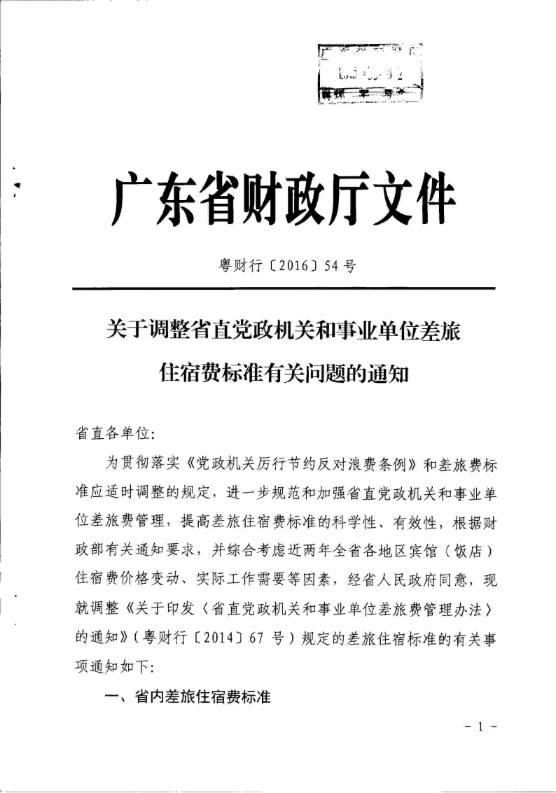 关于调整省直党政机关和事业单位差旅住宿费标准有关问题的通知