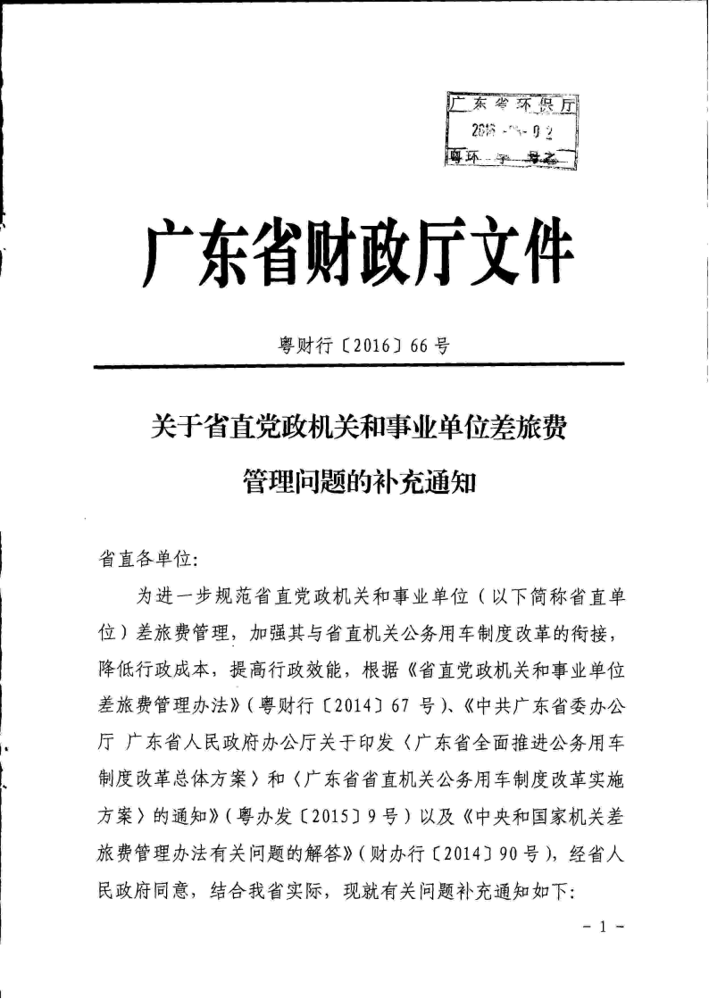 关于省直党政机关和事业单位差旅费管理问题的补充通知