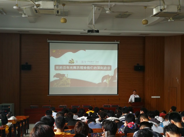 3月15日上午,党委书记陈铭贵以《学党史 强党性 守初心 担使命》为题为环境工程系和机电工程系200余名学生开讲思政第一课。