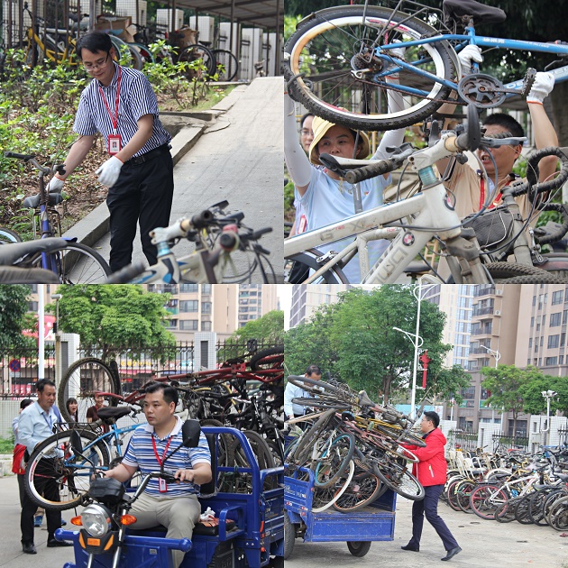 校办党支部开展废旧单车清理活动