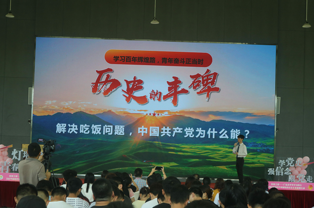 今年是中国共产党成立100周年,为推动党史学习教育进校园活动的深入开展,引导广大学生深入、生动的学好党史、铭记党的光辉历史,5月27日下午,“党史我来讲”大学生公开课大赛决赛在学校展示中心举行。党委书记陈铭贵、副书记钟真宜,相关部门负责人、各院系党总支副书记、辅导员、思政部全体教师及300多名学生观看了大赛。