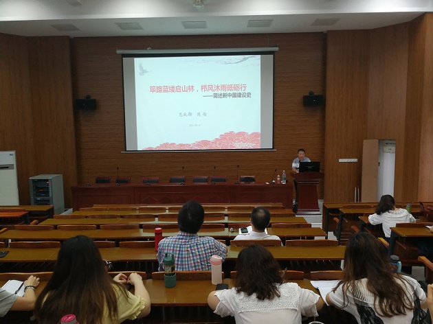 为进一步深入推进党史学习教育,6月10日下午,第一党总支在教学楼117开展了主题为“筚路蓝缕启山林,栉风沐雨砥砺行---简述新中国建设史”的专题讲座,本次讲座由学校党史学习教育宣讲团成员、思想政治理论教学部周瑜开讲,第一党总支书记周石泉、全体党员聆听了本次宣讲。