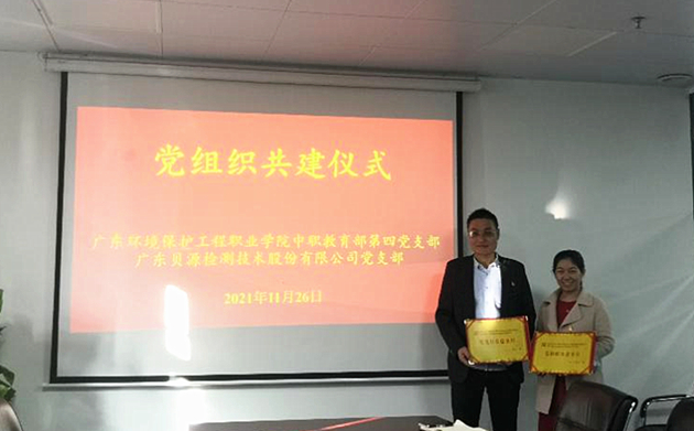 2021年11月26日下午,为进一步推动开云承担的2020年广东省中等职业教育教学改革 “产教融合”项目的实施,落实党建工作引领产教融合,开云课题组一行5人由课题负责人黄树杰同志带队,赴广东贝源检测技术股份有限公司,开展了党支部共建活动及项目进度研讨会,广东贝源检测技术股份有限公司总经理许锐杰、党支部书记李丽华及企业党员代表参加了会议。