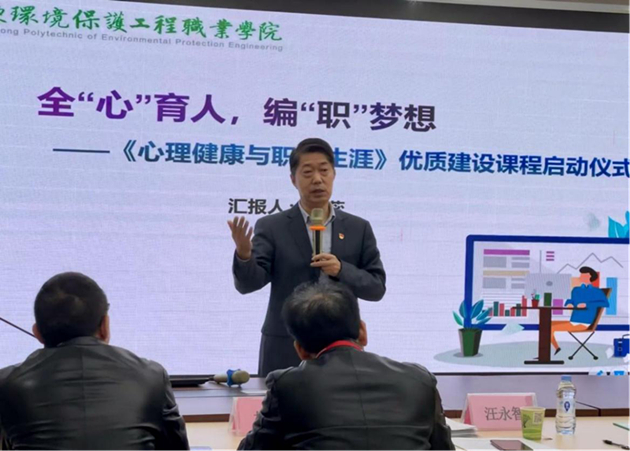陈蕊老师以“全‘心’育人 编‘职’梦想”为题,从课程建设背景、建设队伍、建设内容、建设进度、困惑与计划等方面,对《心理健康与职业生涯》优质课程建设思路进行了详细介绍。