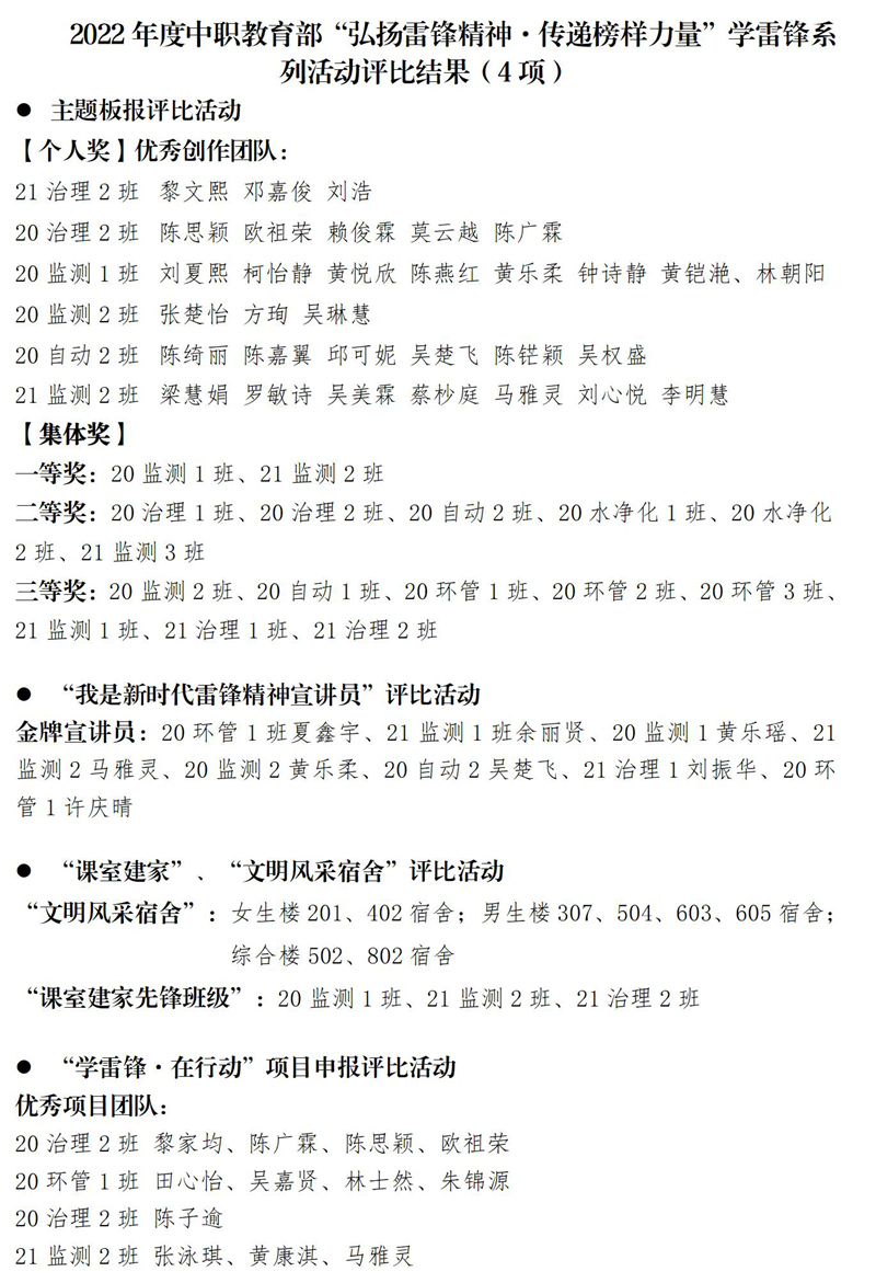 活动中,中职教育部团员青年争当雷锋精神的宣传者、倡导者、践行者,争做志愿服务的传承者、践行者、感悟者,用实际行动将雷锋精神融入日常学习生活,在迎接党的二十大和庆祝中国共产主义青年团成立100周年之际展现出勇担青春使命的精神风貌。(文/廖原、图/20环管1田心怡、20治理2黎家均)