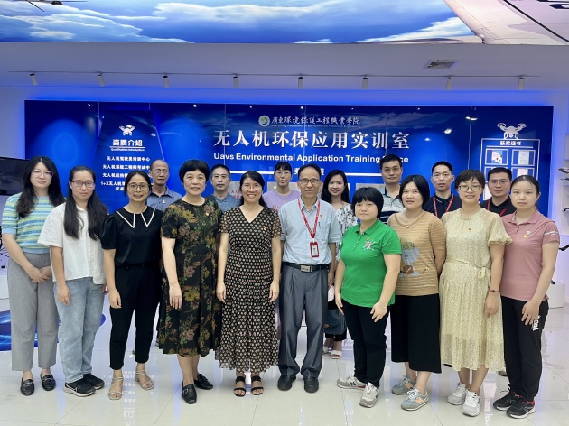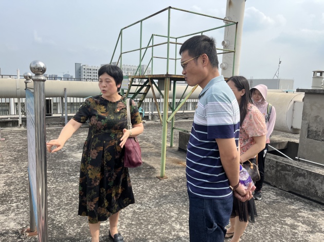 图:蔡慧华部长介绍实训室楼顶废气处理实训设施