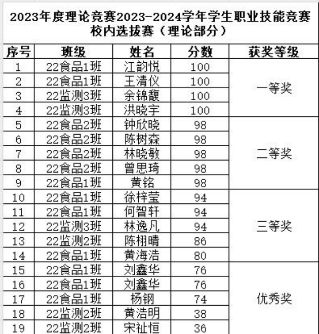 为了检验教学成果,提升学生竞赛水平,活跃校园学习氛围。9月13日-9月19日,中职教育部举行了2023-2024学年学生职业技能竞赛校内选拔赛。设食品药品检验和化学实验技术两个赛项,本次选拔赛由环境监测教研室牵头,各专任教师和实验员作为裁判,在22级在校学生中进行选拔。