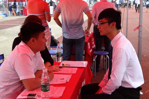 招聘会期间,我院还分别组织召开了政行校企合力促进高校毕业生就业座谈会和校企合作洽谈会。(文/党办 廖宇飞 文学社 谢素运 图/信息中心 钟岸青)