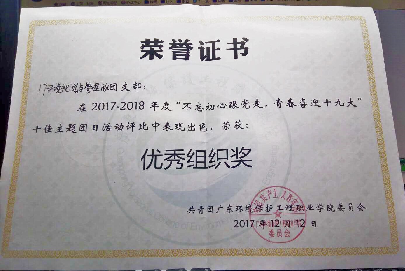 我系17环规1班团支部和17环评1班团支部,在院团委举办的“不忘初心跟党走,青春喜迎十九大”十佳主题团日活动评比中表现出色,分别获得比赛第一名和第四名,荣获“优秀组织奖”。