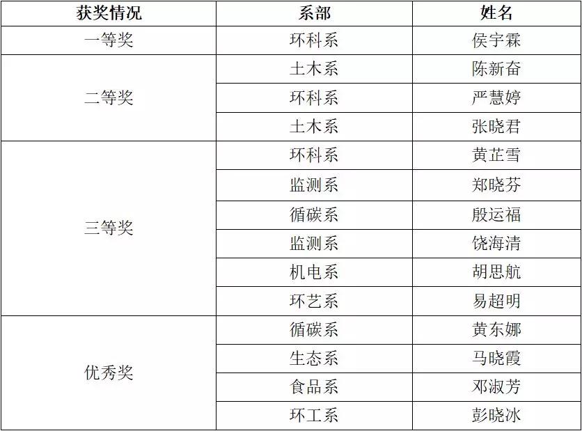 最终来自环境科学系的侯宇霖获得第一名,环境科学系、环境监测系获校级系部优秀组织奖,环境科学系郭璐璐、彭国良老师获优秀指导老师,机电系胡思航同学以1235票获最佳人气奖。