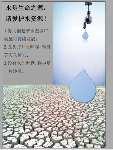 陈玮璇同学的《环环相扣系列》共8幅作品。该系列作品从水资源保护、低碳节能、森林资源保护等多个方面,采用常识绕口令和卡通图片结合的方式进行环保宣传,阐述准确,通俗易懂。