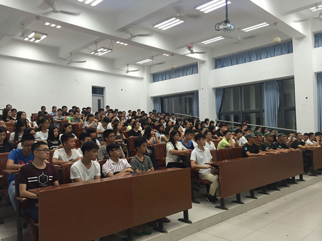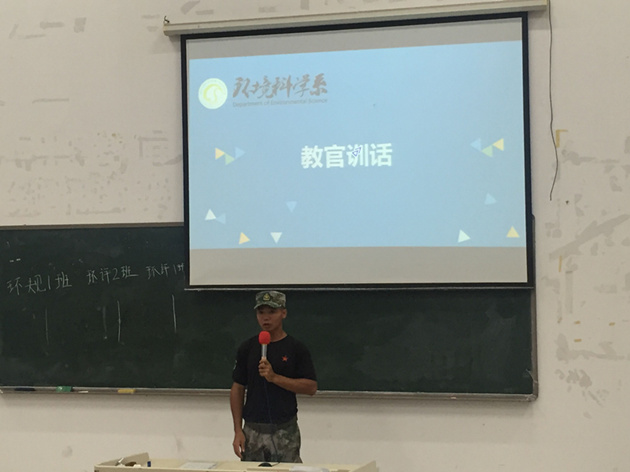9月11日晚,环境科学系2016级学生军训动员大会在教学楼321和323举行。系部副主任余秋良、辅导员方丹彤、教学秘书李豪以及4名教官和326名新生参加了本次大会。