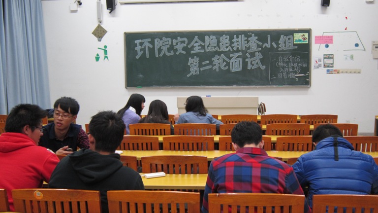 为进一步促进我院安全隐患排查工作的顺利开展,提升学生的专业技能,经过首轮严格筛选,12月23日19点,环院安全隐患排查小组在教学楼309教室进行最后一轮招新面试。
