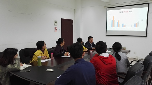 11月23日上午,我系在行政楼409召开招生情况分析会,并邀请招生就业指导办彭江颖主任,姚新和老师、李栋老师与会指导,我系负责招生工作的老师参加了本次会议,会议由郭璐璐副主任主持。