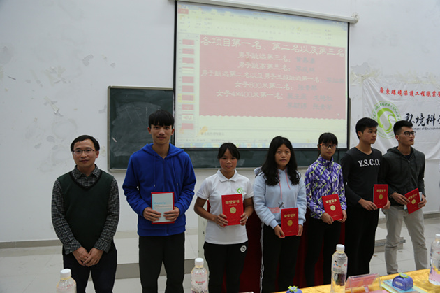 首先系学生会副主席赵联杰作为团学代表发言,他坚信:只要环科系团学继续以高昂的热情,严谨负责的工作态度,众志成城、团结互助,定能为环科开创辉煌。随后,大会对奖学金、优团优干、三下乡、校运会、个人及集体等六个项目的获奖同学进行了表彰,并邀请了张耀文同学发表获奖感言和分享三下乡活动经历。最后郭璐璐副主任向受到表彰的集体和个人表示热烈的祝贺,并感谢大家用辛勤努力铸就了环科的辉煌。同时也希望同学们能反思不足,总结经验,戒骄戒躁,发扬优势,争当环科好榜样。
