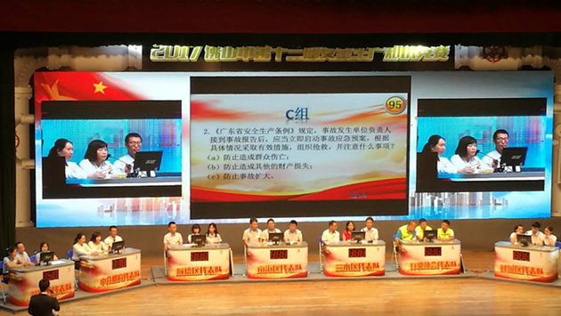 2017年6月28日,“万企竞风流”佛山市第十三届安全生产知识竞赛决赛在佛山市禅城区琼花大剧院举行,由环境科学系王小辉、杨硕、韩光胜、成佐4位老师组成的广东环保学院代表队在竞赛中沉着应战、表现优秀,取得了银奖的佳绩!