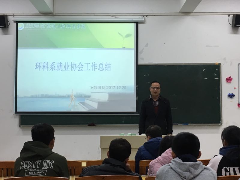 12月20日晚,环境科学系就业协会工作总结大会在教学楼201举行,系副主任黄华、协会指导老师彭国良和协会成员出席会议。