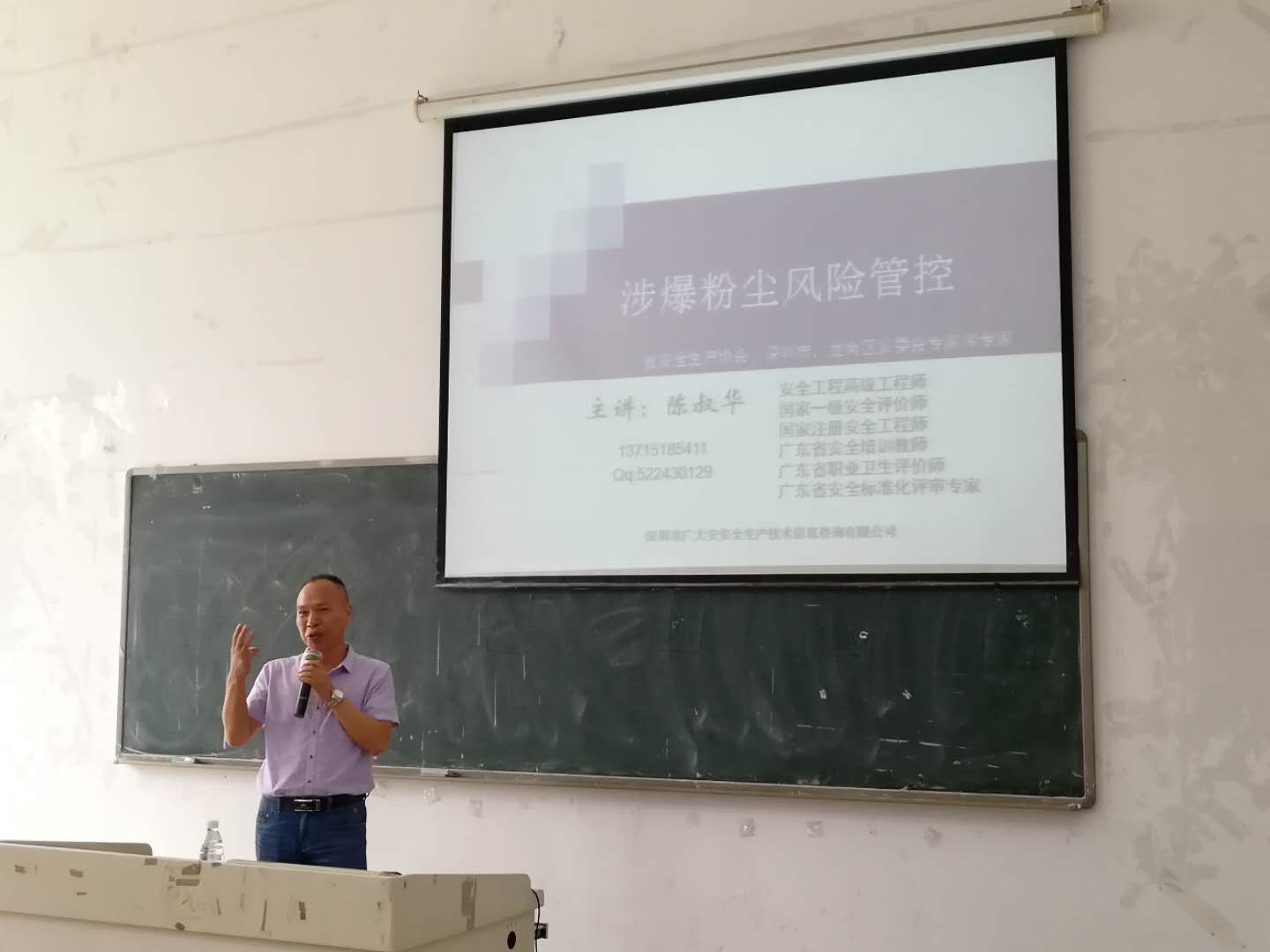 2018年4月12日下午,环境科学系在多媒体119教室召开了企业精英进校园专题讲座。讲座邀请了深圳市广大安安全生产技术信息咨询有限公司总工陈叔华主讲,安全健康与环保、安全技术与管理2个专业约60名学生到现场聆听。
