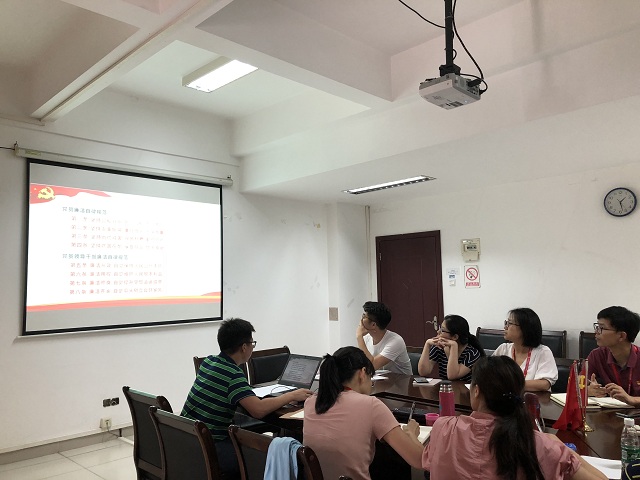 9月21日,环境科学系党支部在行政楼622召开2018年第七次支部大会暨纪律教育专题学习会,支部全体教职工党员参加。