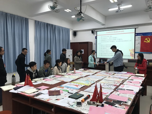 会议第一项议程,支部换届工作。首先通报了上级党委对同意换届选举的批复,稍后听取了上一届支部书记郭璐璐同志作的工作报告,主要从工作回顾、主要工作成绩与不足以及对下届党支部的建议等方面进行了汇报。大会审议并表决通过了工作报告、选举办法、党支部委员候选人名单、以及监票人和计票人名单。根据选举办法的有关规定,与会党员以无记名投票的方式选举产生了党支部新一届委员会委员。联系环科系党支部的院党委委员刘晓冰同志首先肯定了上一届支部委员的工作成绩和亮点,并希望新一届支部委员能够继承和发扬上一届支部委员的精神,充分发挥党支部战斗堡垒作用,带领老师和同学为实现学院的奋斗目标而努力。