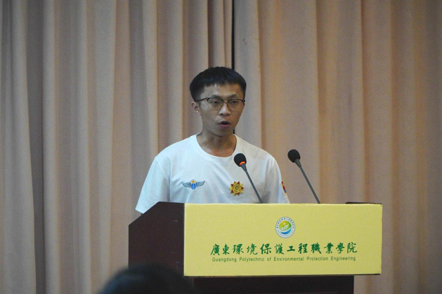 刘俊水同学作为劳创训练营营员代表发言。他号召营员们一起崇尚劳动、尊重劳动、热爱劳动,积极参与到劳创训练营的各项活动中去,以昂扬向上的劳动热情,释放创造潜能,提高自身劳动创新创造能力,争当新时代新征程的开创者建设者。