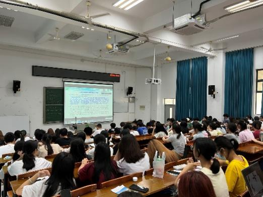 图2 同学们线下集中观看黄大伟博士主讲环境风险管理
