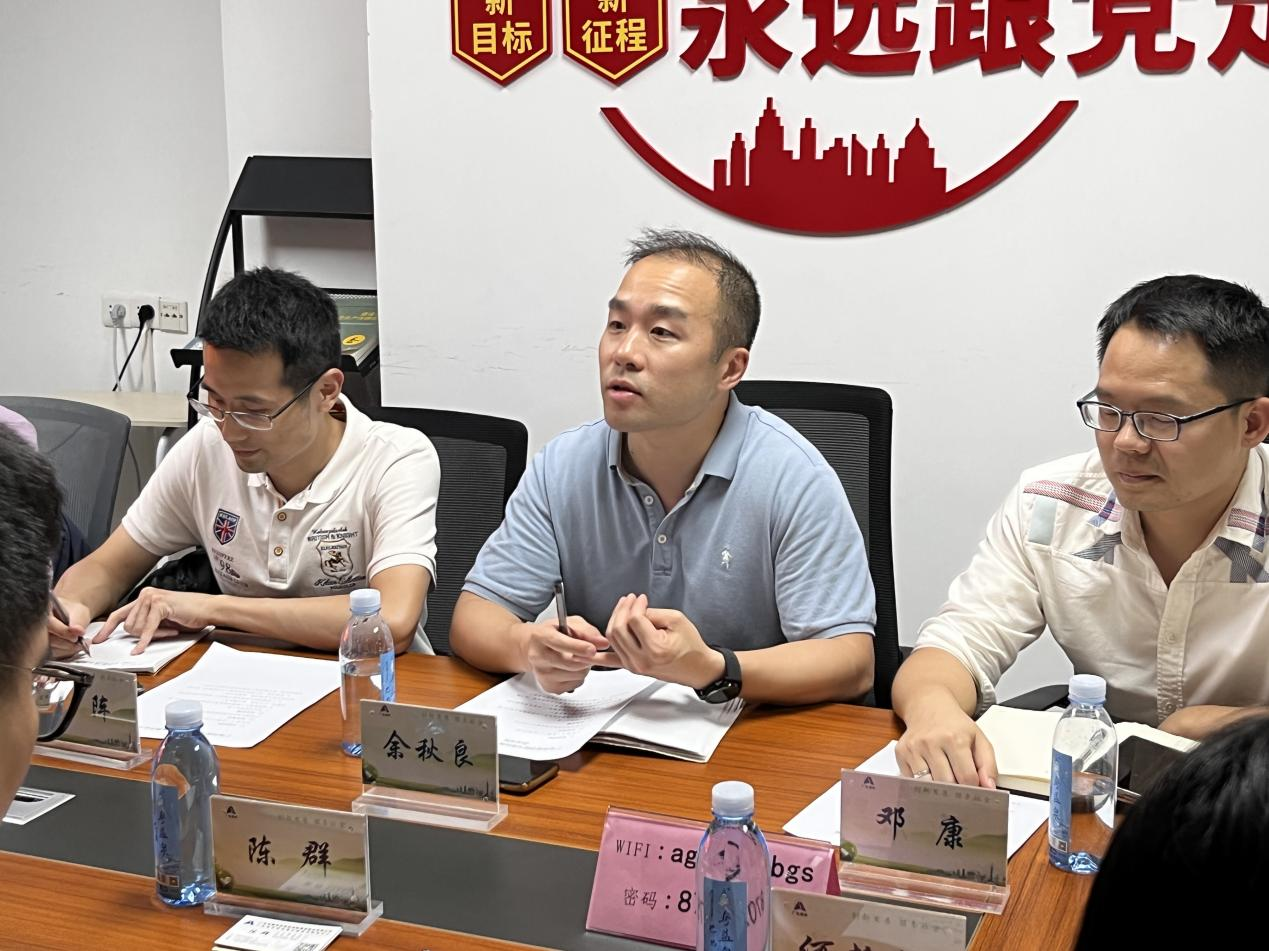 调研会上,余秋良院长介绍了学校的办学情况,以及本学院的专业设置、人才培养、科研技术服务等有关情况,以及与现在该中心工作的我院优秀毕业生邓淑天、李思灿进行了亲切交流。陈群主任介绍了广东省建筑科学研究院集团股份有限公司和广东省生活垃圾分类技术研究中心的基本情况和业务现状。与会人员就学生实习就业、人才培养支持、专业建设、教材编制、科技服务合作等进行深入交流。