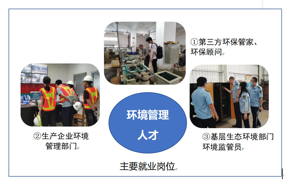就业方向:面向环境咨询类公司、环保服务机构、生产企业环境管理部门、基层生态环境管理部门,担任环境影响评价技术员,环保管家技术员,生产企业的环保管理员,基层生态环境部门的环境监管员等。获取技术工作经验后,可进一步发展成为环境影响评价工程师、注册咨询工程师等。