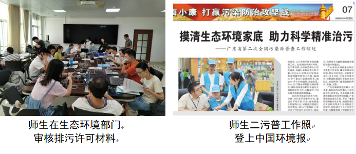 本专业借力学院环保科技服务平台,实现与产业无缝对接,产教融合渗透到人才培养的各个环节。通过打造校内真实工作场景,引入真实项目提升学生技能,师生实践团队多层次多角度参与对外社会服务。在南海区环境统计数据核查工作中派出教师210人次,学生297人次;参与排污许可证申报核查、第二次全国污染源普查工作等。经多年打造,本专业形成了“一专多能,德技并重,多元驱动,综合提升”的人才培养模式。