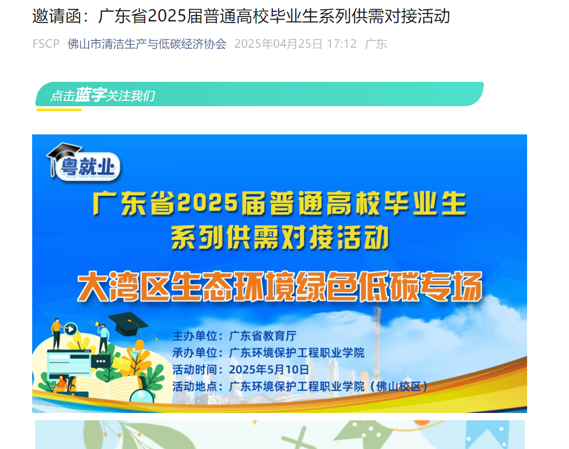 图2 佛山市清洁生产与低碳经济协会转载开云招聘会推文进行宣传