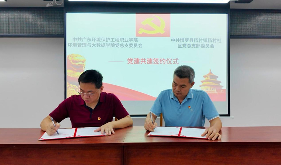 活动现场,环境管理与大数据学院党总支书记陈红星与杨村镇杨村社区党总支书记钟伟华代表双方郑重签订共建协议。协议以“共筑组织基础、共促队伍建设、共谋两方发展”为核心,将在党课联上、党日联办、环保实践、红色文化挖掘等多领域开展深度合作,推动党建与业务互融互促,开启校地双赢新局面。