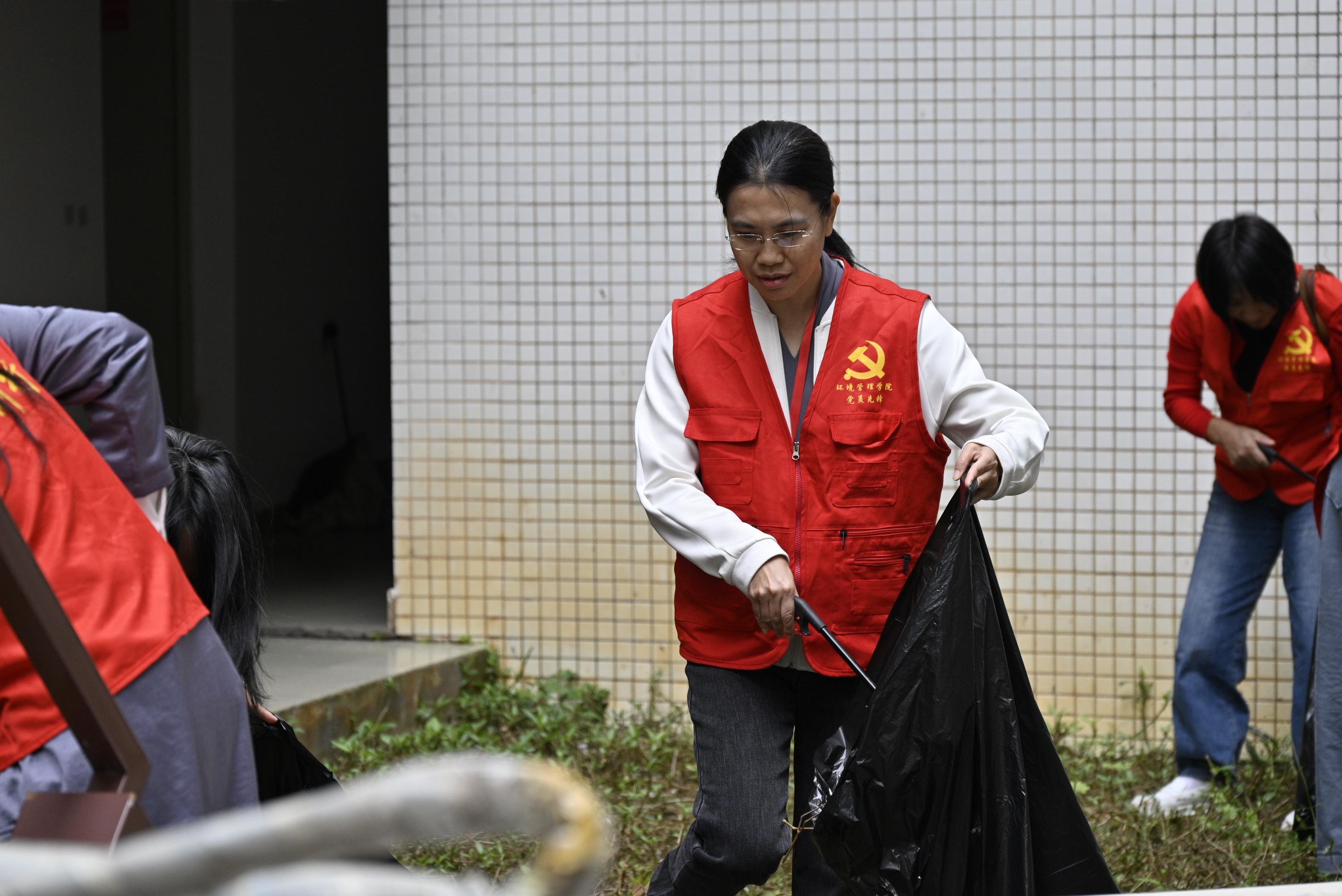 活动伊始,学院党总支面向全体师生党员进行了简短动员部署,明确任务分工与工作要求。随后,全体师生党员迅速下沉至学生宿舍低楼层及公共区域,聚焦宿舍区空旷地带、卫生死角等重点区域开展专项清理行动。党员老师重点对各类积水容器进行全面清除,从源头上阻断蚊媒滋生途径,切实改善学生宿舍周边环境卫生条件。