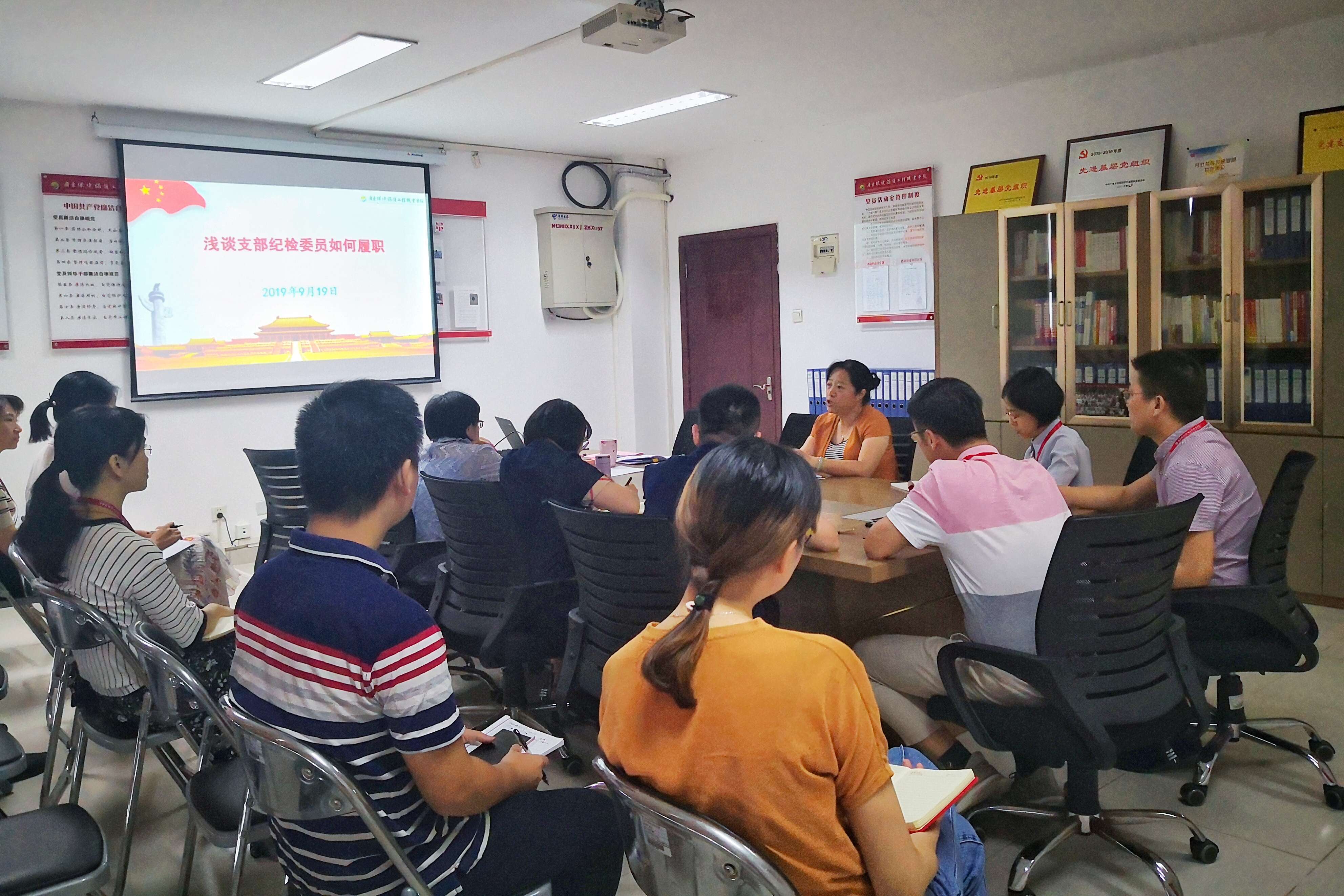 与会人员集体学习了习近平总书记在“不忘初心、牢记使命”主题教育工作会议上的讲话精神以及新修订的《中国共产党问责条例》,并观看纪检监察干部培训系列课程之《深入学习贯彻十九届中央纪委三次全会精神》。学院专职纪检监察干部结合工作实际,就“支部纪检委员如何履职”分享了自己的心得体会。