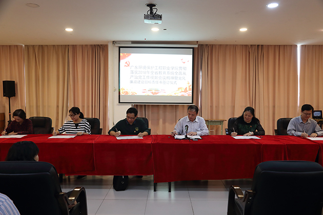 视频会后,陈文韬书记与学院办公室、组织人事部、总务部、环境科学系、广东环院环境工程有限公司等重点部门负责人现场签订2018年党风廉政建设目标责任书,并对落实会议精神、深入推进学院全面从严治党工作提出两点要求。一是要增强政治意识,提高政治站位,在思想上、政治上、行动上同以习近平同志为核心的党中央保持高度一致,坚决贯彻落实党的路线方针政策和党中央决策部署。二是要结合学院当前和今后一个时期的发展,特别是要结合学院“十三五”发展规划,落实上级会议精神。认真开展“大学习、深调研、真落实”活动,坚持问题导向,明确学院改革发展的任务和要求,在专业建设上下更大功夫,进一步提高人才培养质量,努力服务好环保中心工作。(文/党办 梁丽,图/信息中心 钟岸青)
