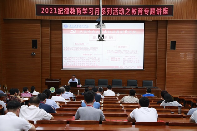 报告会在教学楼116会议室举行。学校全体中层干部及人事、财务、总务、招生、科研等敏感岗位人员参加学习。(文/周瑜,图/钟岸青)