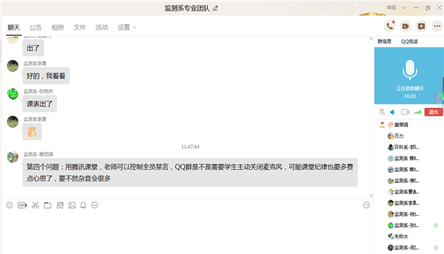 接着,参加公开课人员对网络教学存在的问题进行了研讨,包括使用平台问题、网络速度、是否直播、学生上课状况等,蔡宗平副主任就有关问题做出了相应的回答。