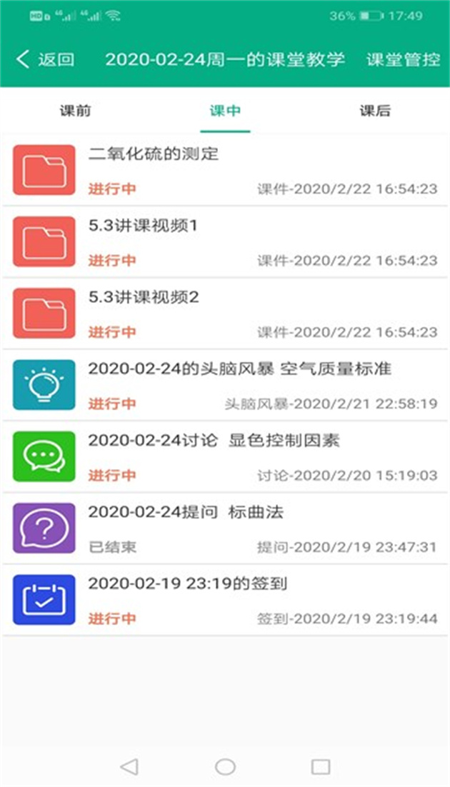 图1 网络教学授课平台(学生手机端)