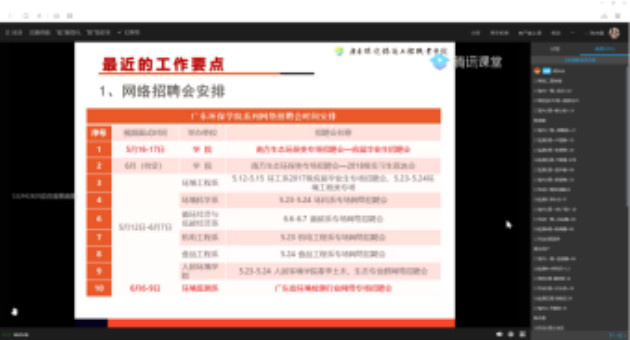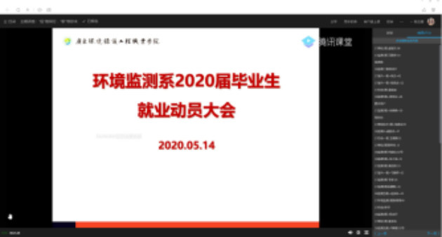 随后,尹延军老师就我系目前已开展就业工作及现阶段需要同学们配合进行的就业工作进行了详细介绍;动员所有毕业生做好5月16日-17日学院南方生态环保类专场招聘会及6月6日-9日系部检测类专场网络招聘会的参会准备。