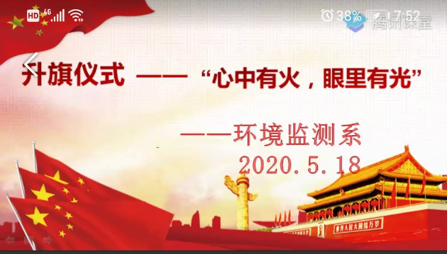 2020年5月18日早上8点,我院环境监测系举行了网上升旗仪式。出席本次升旗仪式的有监测系团总支郭璐璐主任、朱称水副主任、蔡宗平副主任、刘华丽副书记及系部辅导员、各班班主任和全体学生。升旗仪式由罗悦幸主持。
