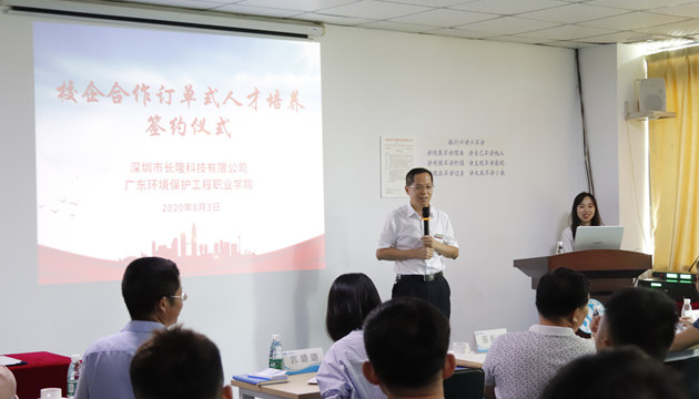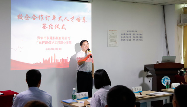 8月3日上午,孙水裕院长率队前往深圳市长隆科技有限公司举行首届长隆订单班开班仪式。公司蔡振山董事长、陈煜辉总裁、李盆沙经理、学院孙水裕院长、招办彭江颖主任、孙晶老师、环境监测系郭璐璐主任、朱称水副主任及廖琦老师等参加了开班仪式。