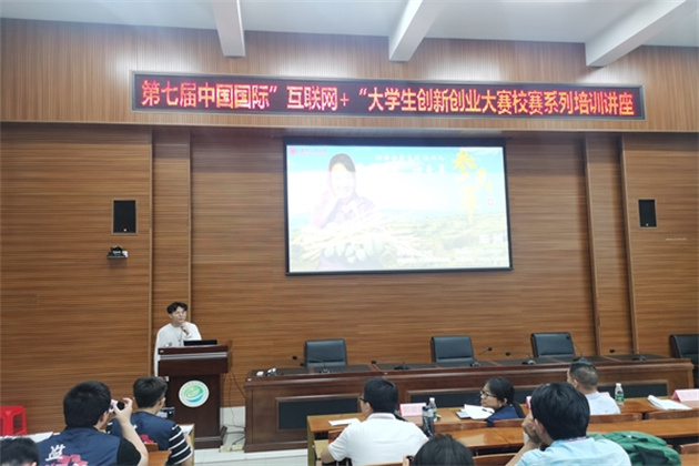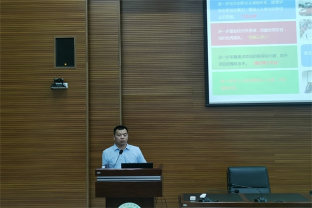 何绍彬副书记以《教赛互促、双向赋能的创新创业教育》做主题报告,结合获国家金奖“参芪草”项目,介绍了参赛历程、项目选题及备赛过程,分享了如何做好参赛项目网评准备、商业计划书撰写、路演PPT及项目介绍视频的制作等经验。同时,分享了学校、学院创新创业教育的经验做法、存在的困难及应对的措施。最后,“参芪草”团队徐浩同学现场路演了全国总决赛金奖项目《参芪草--助力西部乡村振兴的神奇草》。 (文/图 环境监测系朱称水)