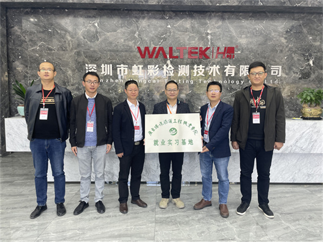 调研交流第一站是深圳虹彩检测技术有限公司。公司陈奂奕总经理等热情接待,带领参观了虹彩标准化检测实验室,介绍了公司业务开展情况。座谈会上,校企双方就实习就业基地建设、企业订单人才培养及环保检测员培训等方面深入探讨交流,并达成合作意向。会后举行了就业实习基地授牌仪式。
